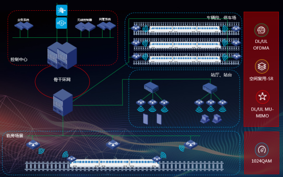 新华三地铁Wi-Fi 6解决方案带来了全面的技术革新。为地铁全场景应用带来更好的体验。(图地铁Wi-Fi 6应用全景图)Wi-Fi 6采用了OFDMA技术,将帧结构进行重新设计,细分成若干资源单元(RU),可以同时分配给不同的用户使用,大大提升了终端的接入效率。特别是在地铁车辆段这种密集覆盖的场景,Wi-Fi 6采用的OFDMA技术将大大改善列车的接入速率,实现列车运维数据及其他视音频数据的快速传输,同时配合完善的MU-MIMO技术及全新的空间重用(SR)技术来提升多用户双向交互并发场景的性能需求并解决同信道干扰问题。特别适用于车辆段、站台这种密集覆盖同时又伴有同频干扰的场景,可以大大改善Wi-Fi网络的使用体验。更高的1024QAM调制方式带来了更大的数据吞吐性能。实际车地无线通信数据吞吐率可达到1Gbps以上,超高的车地无线通信带宽为未来AI技术、VR、AR技术的引入预留了高效的数据传输通道。