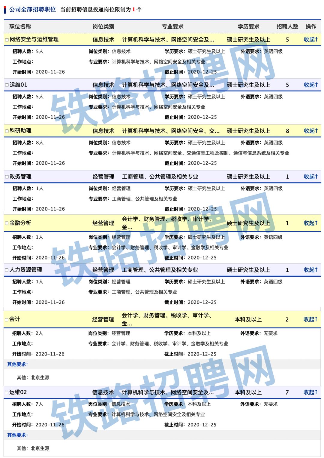 信息公司本次计划招聘应届高校毕业生共计30名,详见岗位列表。