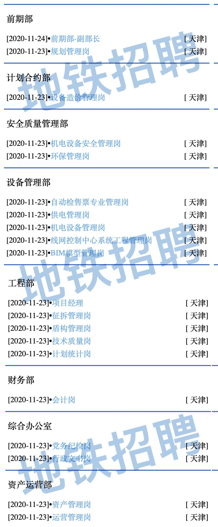 1、天津滨海新区轨道交通投资发展有限公司社会招聘简章