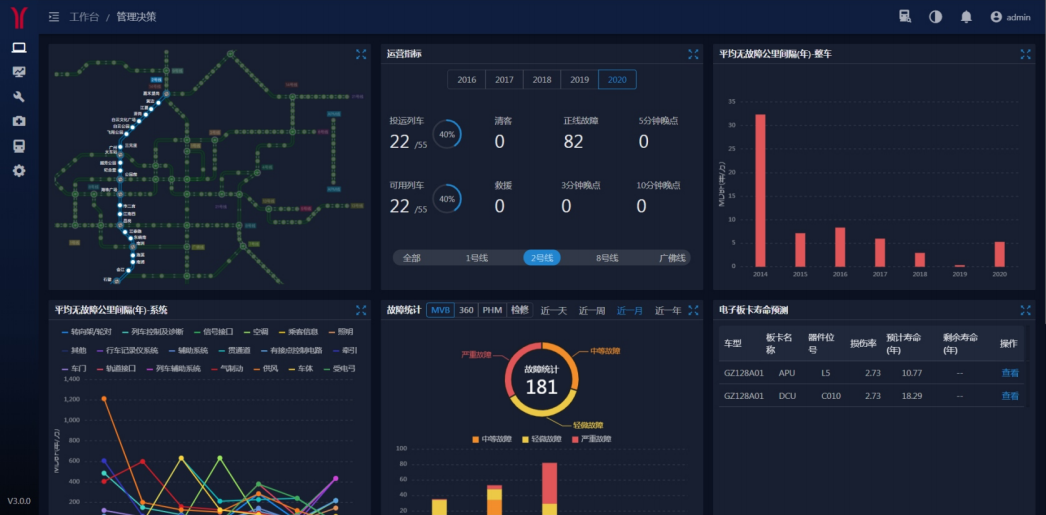 方便实时掌握正线运营车辆运行状态,帮助地铁公司提升运营指标;具备列车全生命周期、多系统数据管理与回溯能力;提供整车与子系统级的健康管理能力,为运营、检修提供决策支持。