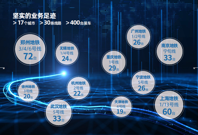 智能运维谱系产品已推广至17座城市,30条线路,400台装车。