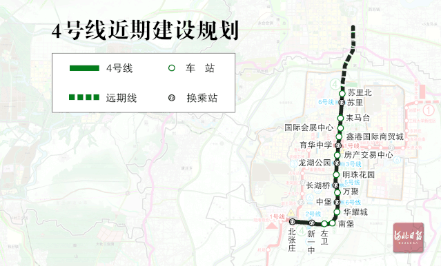 近期建设方案包括2条线,线路总长度60.090km,车站44座。其中1号线一期(新城东大街站~创业大道站),线路长度39.990km,设车站27座;4号线全线(苏里北站~北张庄站),线路长度20.100km,设车站17座。设全面修车辆基地(综合维修基地合建)1处,重点修车辆基地1座,停车场1座,控制中心1座,设置主变电站2处。