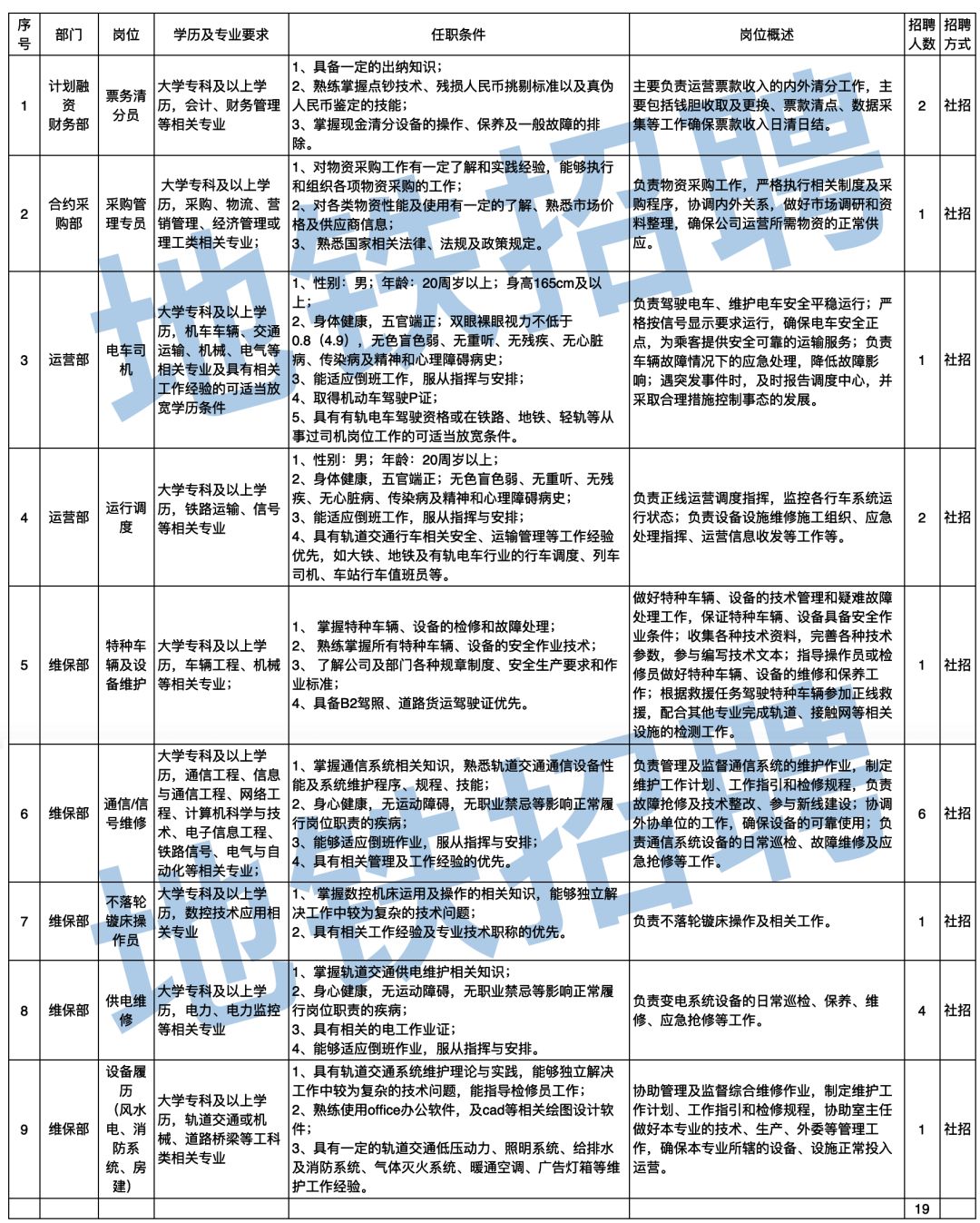 贵阳市城市轨道交通集团有限公司运营分公司2020年社会招聘公告