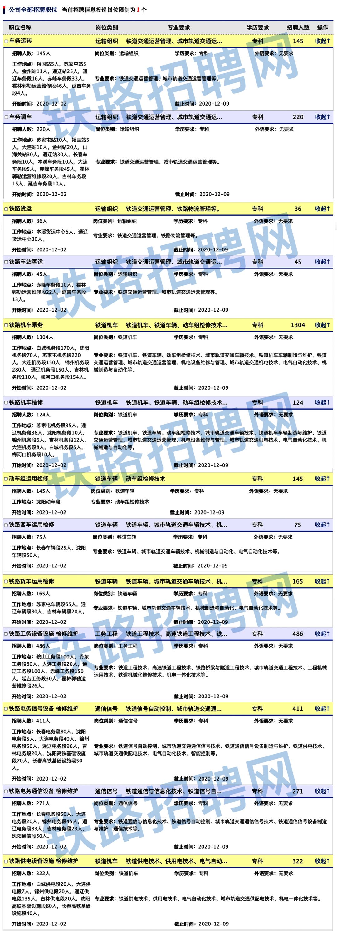中国铁路沈阳局集团有限公司根据企业发展需要,拟招聘全日制普通高等院校大专(高职)学历毕业生,现将有关事项公告如下: