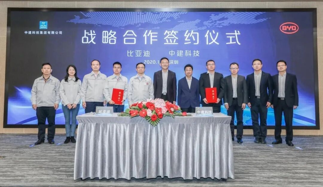 2020年12月1日,比亚迪股份有限公司(简称“比亚迪”)与中建科技集团有限公司(简称“中建科技”)在深圳坪山比亚迪全球总部签署了战略合作协议。坪山区委副书记、区长李勇,区工业和信息化局局长李萌,区住房建设局局长刘守明,比亚迪集团董事长兼总裁王传福,比亚迪通信信号有限公司总经理刘伟华,中建科技总经理张仲华,中建科技深圳分公司总经理张绍栋等出席了本次会议。