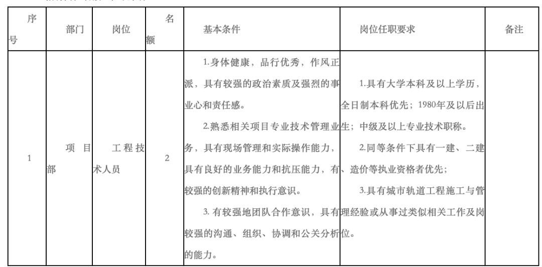 根据中铁六局集团北京铁路建设有限公司发展需要,现面向社会公开招聘项目部办公室管理人员和工程技术人员各1名,共2名。有关事项公告如下: