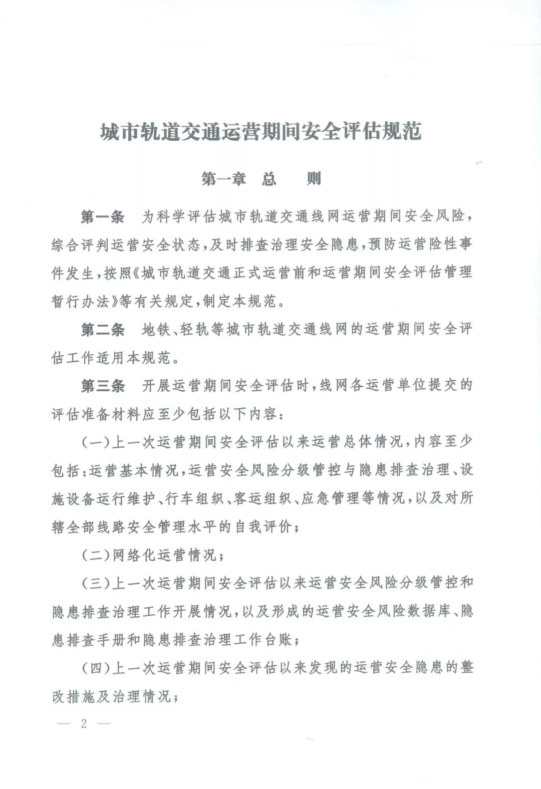 城市轨道交通运营期间安全评估规范