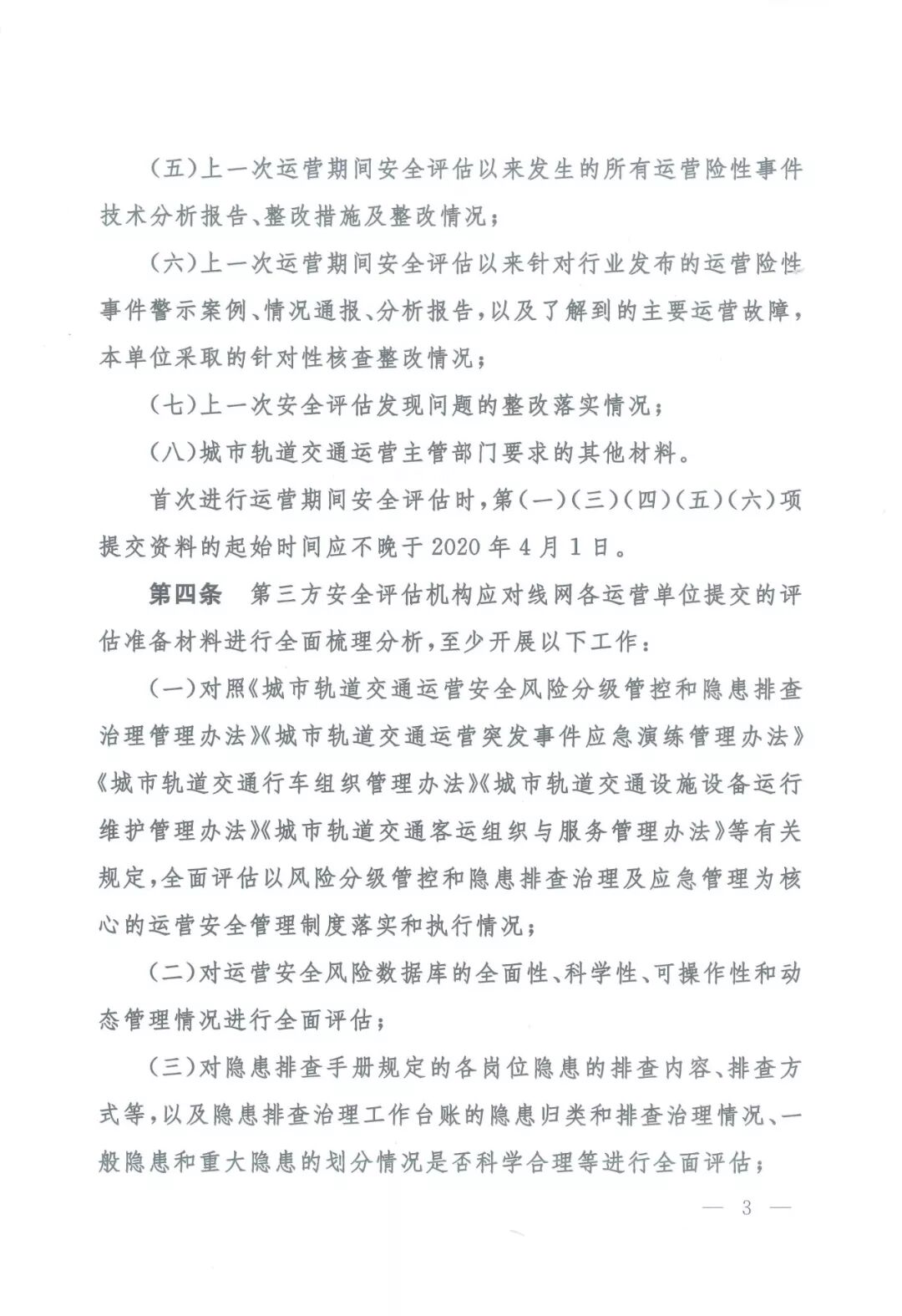 城市轨道交通正式运营前和运营期间安全评估管理暂行办法