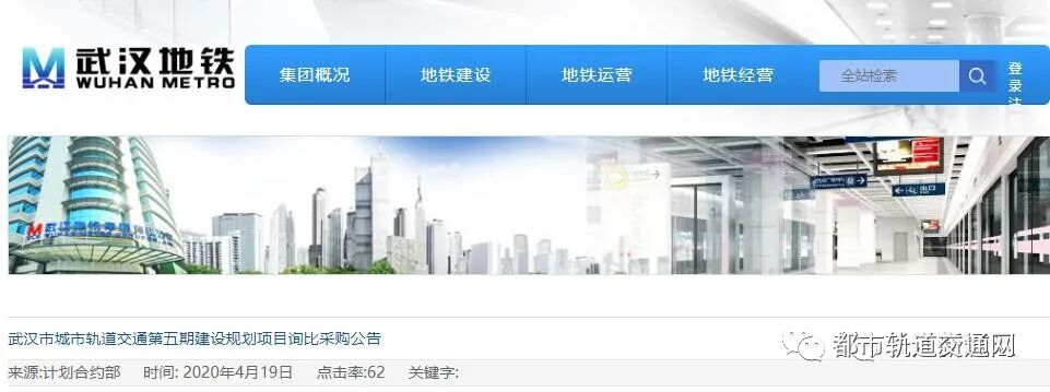 4月19日,武汉地铁集团发布“武汉市城市轨道交通第五期建设规划项目询比采购公告 ” 。