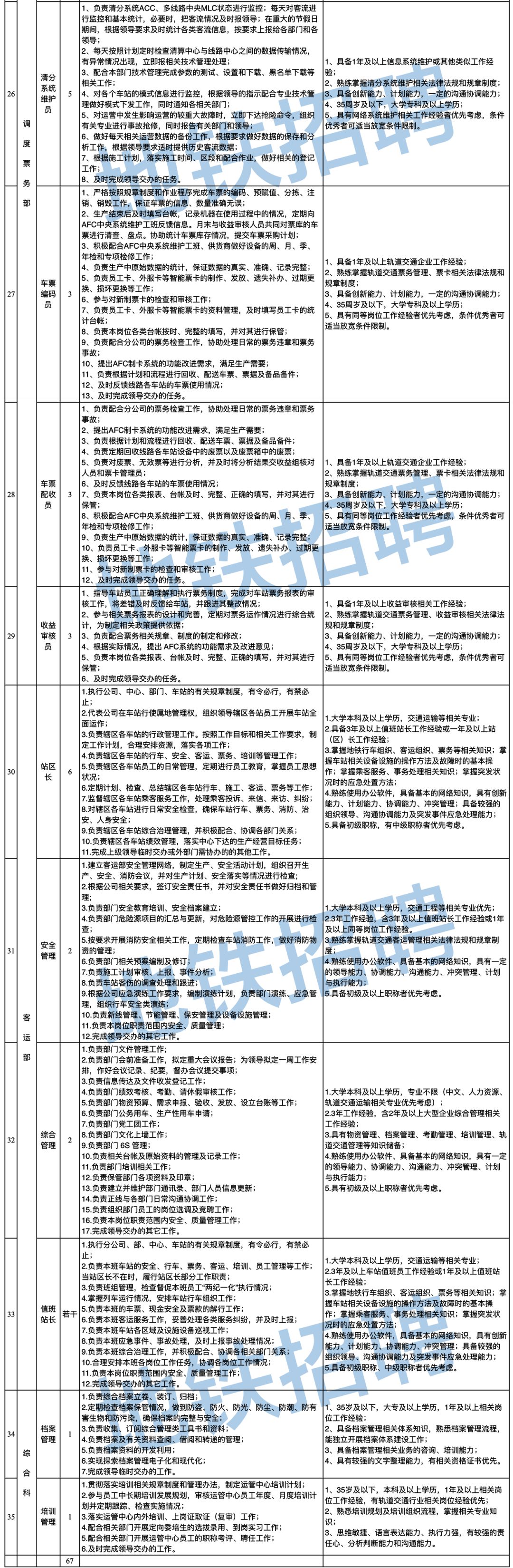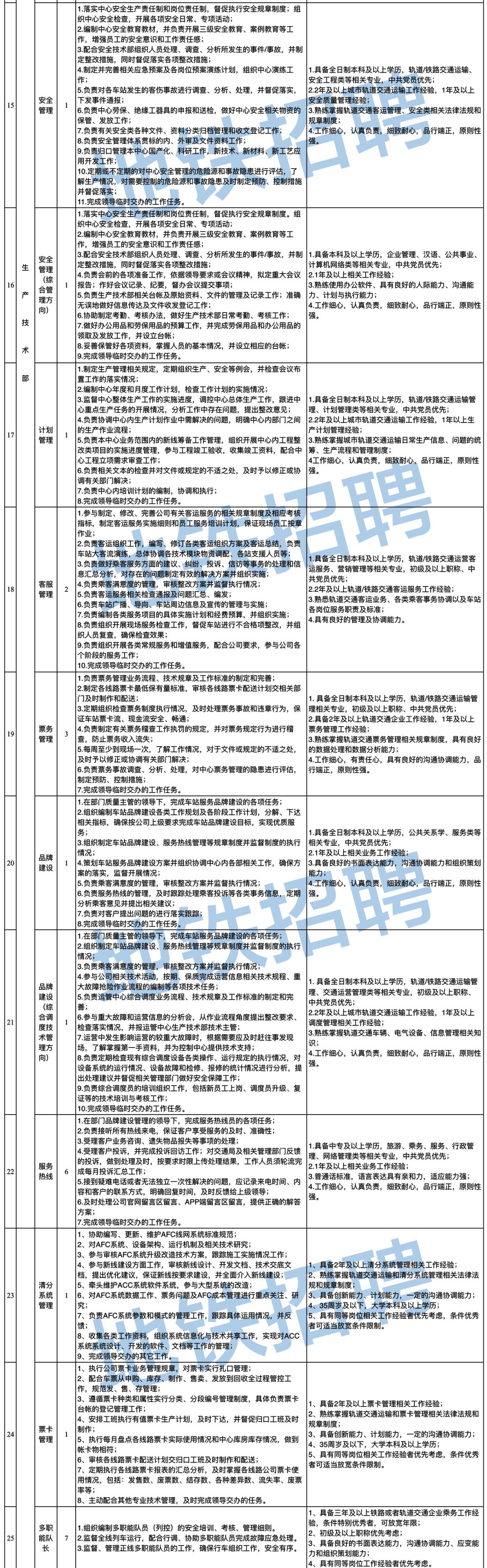 根据芜湖轨道交通建设、运营、管理需要,现面向社会诚招以下专业相关技术人才(校园招聘为2019届、2020届国家统招普通全日制本科/大专及以上毕业生)。