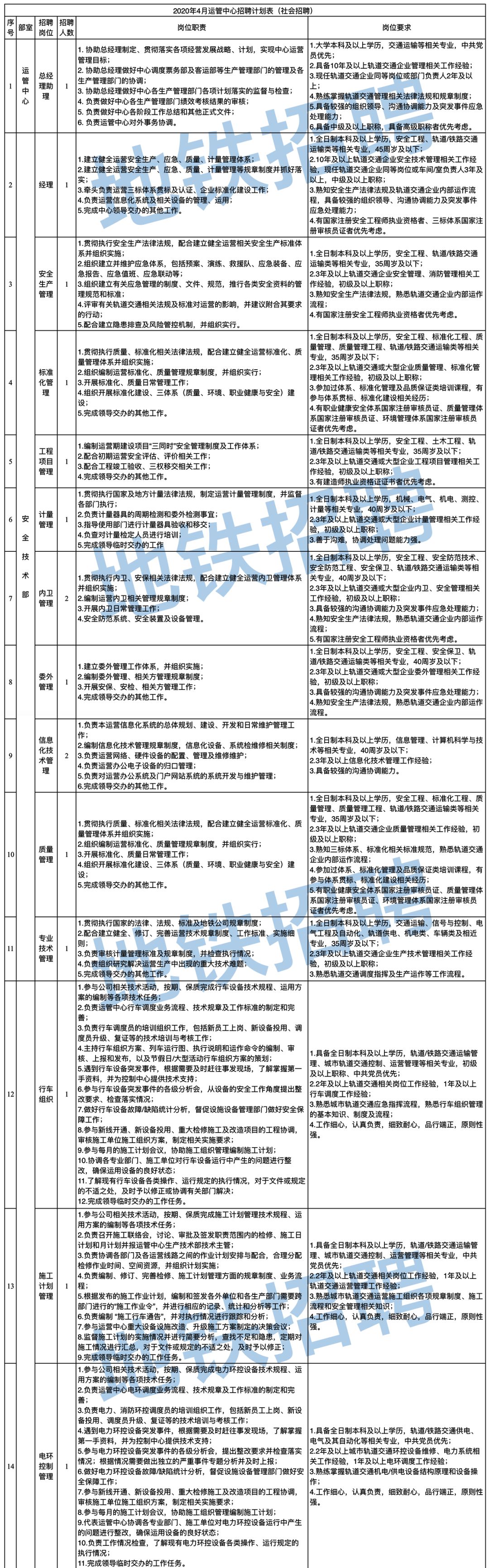 芜湖单轨交通招聘简章(2020年4月运管中心)