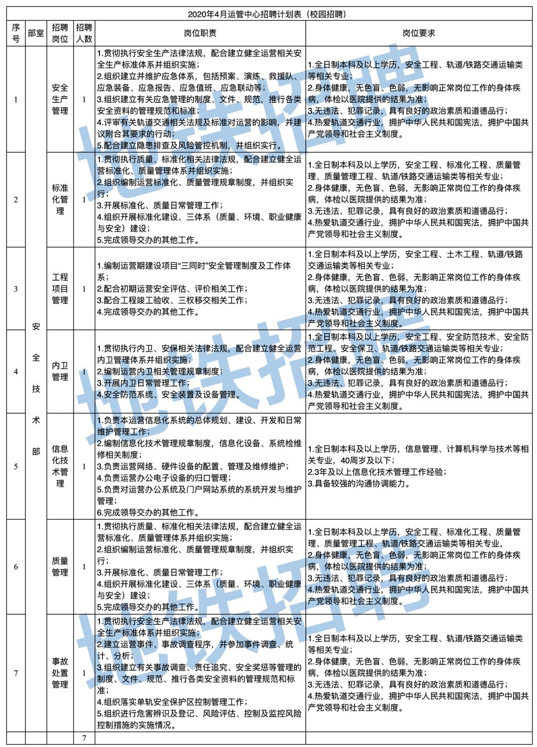7人!校园招聘岗位: