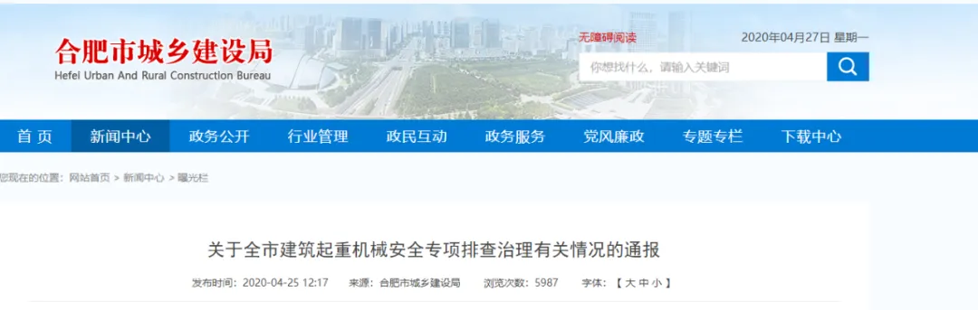 关于全市建筑起重机械安全专项排查治理有关情况的通报