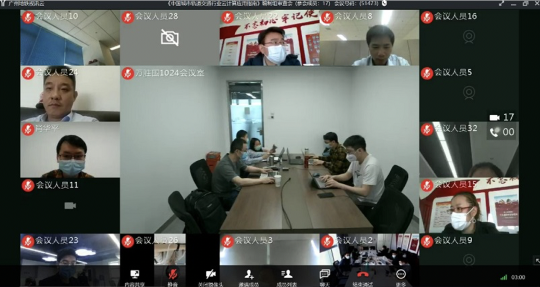 4月14日和21日,城市轨道交通协会信息化专业委员会主办,广州地铁集团有限公司承办召开《城市轨道交通云计算应用指南》编制组审查会。中国铁道科学研究院集团有限公司、南京地铁集团有限公司、武汉地铁集团有限公司、东莞市轨道交通有限公司、石家庄市轨道交通有限责任公司、呼和浩特城市轨道交通建设管理有限责任公司、温州市铁路与轨道交通投资集团有限公司、北京全路通信信号研究设计院集团有限公司、广州地铁设计研究院股份有限公司、深圳市腾讯计算机系统有限公司、阿里云计算有限公司、华为技术有限公司、杭州华三通信技术有限公司、浪潮集团有限公司、中国电信股份有限公司云计算公司、广州擎云计算机科技有限公司、奇安信科技集团股份有限公司等参编单位的30多位专家参加会议。受疫情影响,本次会议分别在广州和北京设置分会场,全国各地不便前往分会场的专家通过广州地铁视讯云软件远程参与审查。