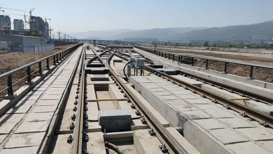 一 新型扣件优点众多 天水有轨电车一期工程除滑坡地段及车辆段库外线采用碎石道床,其余地段均采用整体道床。轨道采用60R2槽型轨、扣件直埋式整体道床结构。槽型轨设置轮缘槽,绿化段最大限度的实现了绿化和铺面,取得良好的景观效果,混行段可与道路路面衔接,改善机动车行车条件;全线采用跨区间无缝线路,道床为扣件直埋式整体结构,国内暂无与之匹配的通用扣件,因此我院联合其他公司共同研发适用于有轨电车的扣件,具有轨道平顺性好、低振动、低噪音,舒适度高,运营维护简单的优点。 二 框廊结构别具匠心 框廊结构现场图 麦积区境内成纪大道南侧、藉河北岸边坡位置设置框廊段,框廊结构采用单箱两室现浇钢筋混凝土框架结构,顶部为有轨电车轨行区,此种结构型式及布置方式在国内有轨电车领域尚属首次,即满足了行车需求,又减少对周边环境的影响。框廊结构左侧紧邻成纪大道,有利于交通衔接及行人通行;右侧结合设置藉河二期改造工程亲水平台,该方案可减少占用藉河河道近十米,在确保防洪要求的同时,还增强了景观效果,与亲水平台相呼应,集出行和休闲于一体。 三 调节器及伸缩装置独出心栽