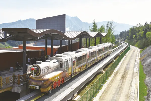 5月1日上午,贵州习水森林度假区森林观光小火车启动仪式举行,贵州习水旅游投资(集团)有限公司董事长陈叶青、总经理杨伦平,株洲中车特种装备科技有限公司党支部书记兼总经理顾发根等出席启动仪式。全景复古单轨观光专列项目线路全长23000米,全线由1440颗钢梁组成,是工作人员经过1000多个日夜的奋力付出,让这1000万级豪车奔驰在贵州这片红色大地上。项目制作方负责人顾发根表示,非常感谢客户在项目推进过程中的信任、理解和支持,感谢公司项目团队的辛勤付出,同时恭贺客户喜提千万豪车,他表示,能为贵州特色旅游事业的蓬勃发展贡献一份力量是荣幸也是鞭策,公司将继续不遗余力的研制出更多适合西南地区全域旅游发展的观光产品,让每一位游客感受移动观景的愉悦和美。作为具有社会责任感的国有企业,在倡导节能减排的今天,低碳环保、安全舒适的绿色旅游交通方案是中车株洲特装公司产品探索的方向,复古小火车充分体现了环境友好型和安全的特性。车辆以纯电力驱动,用蒸汽模仿蒸汽机车烟雾排放,避免传统复古小火车烧煤烧油给沿途带来的污染,零排放无污染、低碳环保,又极具观赏性。全程运用单轨高架架设轨道,植被破坏小,可恢复。列车运行时,橡胶轮胎与轨道接触,噪声和震动声小,乘坐舒适。车辆采用环抱线路设计,车厢下端像伸出了两排弯曲的胳膊,将钢轨仅仅环抱,不会发生脱轨或侧翻事故,同时兼具有爬坡了能力强、转弯半径小等优点。全景复古单轨观光专列项目是习水县打造全域旅游的重大工程项目,是根据习部森林公园文化和旅游资源特色量身定制的绿色产品,整个项目将建成环县城山地观光专列,共投入三列车运营,分别是鰼魚号、鰼部号、鰼鼓号,每列车配有全景天窗,外观、内饰以习水县传统文化为背景,展现给游客的不仅是体验性极强的绿色旅游交通工具,更是文化的承载者。