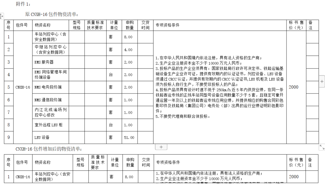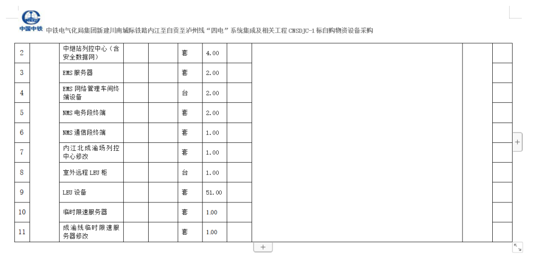 新建川南城际铁路CNSDJC-1标自购物资设备信号专业采购招标