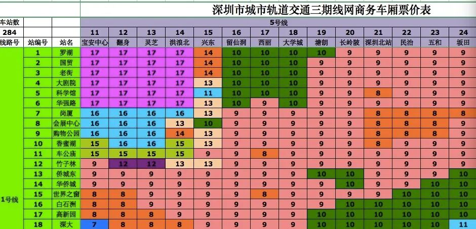 深圳城市轨道交通三期线网票价表的编制按照现行里程分段计价票制和票价标准,并遵循如下原则: