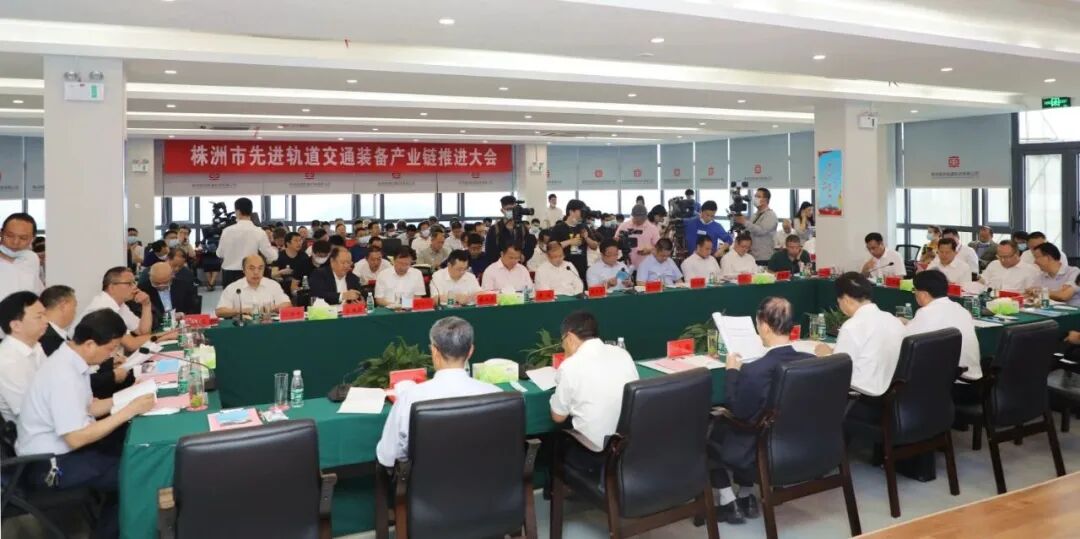 株洲市委书记、市人大常委会主任、株洲市先进轨道交通装备产业链链长毛腾飞,株洲市先进轨道交通装备产业链副链长、中车株机公司党委书记、董事长周清和,株洲市先进轨道交通装备产业链副链长、中车株洲所党委书记、董事长李东林,中车株机公司专家委员会主任、中国工程院院士刘友梅,株洲市先进轨道交通装备产业链副链长、湖南工业大学党委书记谭益民,株洲市先进轨道交通装备产业链企业联合党委书记、中车株洲所产业发展委员会主任邓恢金等出席大会。株洲市委常委、常务副市长何剑波主持大会。