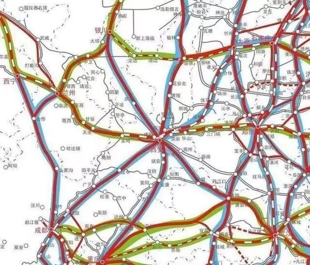 4、陆桥通道。连云港—徐州—郑州—西安—兰州—西宁—乌鲁木齐高速铁路。