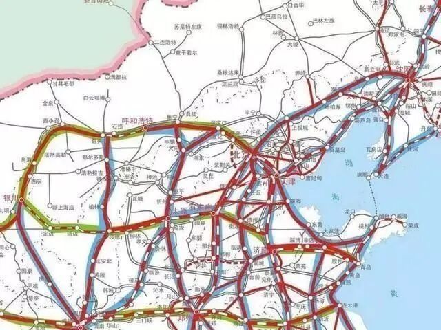 华北的核心,无疑还是 北京、天津。京津成为连接东北和华北的两条通道。青岛、济南、石家庄、太原、呼和浩特、沈阳通过高铁拱卫京津。