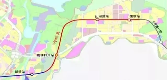 地铁2号线东延工程,也就是2号线三期工程。线路西起2号线终点新秀站,终于莲塘站,线路长约3.8公里,全程地下敷设,设置车站3座。