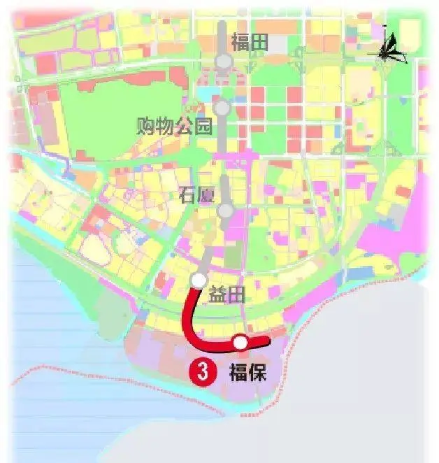 地铁3号线南延工程自益田至福田保税区,线路长1.5公里,设站1座。