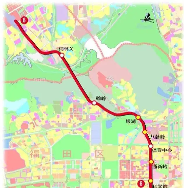 地铁6号线二期线路自深圳北站预留高架桥工程引出,途径龙华、福田、罗湖三区,终于科学馆站。线路全长约11.8千米,包括7站7区间,换乘车站4座。可与已运营的地铁1号线、3号线、7号线、9号线实现换乘。