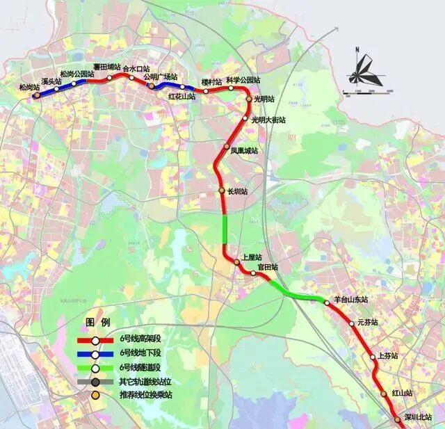 地铁6号线一期工程长约37.6公里,起自深圳北站综合交通枢纽,终于松岗站,设车站20座(其中地下站5座,高架站15座)。