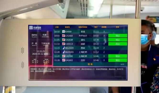 EUHT超高速地车通信系统可实现综合承载CBTC、CCTV、PIS、广播等多种业务,并向乘客提供多元化的乘车体验。车内新增的LCD动态地图界面具有多样性、可更改性和兼容性,可以根据不同需求变更画面布局、线路图、多媒体视频等信息。 客室LCD电视显示器更改为27英寸智能多媒体显示器,为目前轨道交通车载标准屏中显示尺寸最大的客室LCD显示终端,支持全高清图像播放。该设备可通过网络播放流媒体视频,通过发送网络协议控制多媒体显示器的显示内容,如航班信息、站台信息、天气信息、时间信息、温度信息等,并可根据需求在特定的显示位置进行开窗显示,实现直录播切换等。 根据市委市政府的总体安排,首都机场线EUHT示范工程分为两大阶段,第一阶段为2020年4月30日前,完成全部地面及中心设备的安装及调试,完成2列车的改造及EUHT系统承载调试,实现航班信息发布、PIS视频直播、PIS文本信息下发以及CCTV视频的中心查看等功能,实现了由一张网络对CBTC、CCTV、PIS等多种业务的综合承载,充分展现首都机场线作为EUHT研发试验线的示范效果;第二阶段为2020年底前,完成全部剩余8组车的改造调试工作,并进行整体工程验收。 京城地铁在EUHT工程开展以来积极协调各专业人员全力开展工作,总经理郑凤霞亲自挂帅成立工作小组,组织机关管理人员26人,在首都机场线仅有两条检修股道的情况下,克服困难设立一条EUHT改造专用股道,截至目前共提供配合500余人次,提供车辆40余列次。 5月10日凌晨进行了EUHT承载和波导管承载CBTC混跑测试,测试共动用首都机场线7组车,包括3辆完成EUHT改造的车组和4辆现有车组,采用5分钟间隔、7车混跑的形式进行压力测试,经测试,相关改造调试工作达到预期效果。 5月12日召开了EUHT工程阶段性验收专家评审会。专家一致认为“首都机场线EUHT研发试验工程实现了CBTC、PIS、VMS、PA及乘客紧急对讲、航班信息实时显示等业务的综合承载,达到了本工程阶段建设目标”,工程验收得到顺利通过。 目前,首都机场线第4组车EUHT改造工作正在紧锣密鼓进行中,随着车辆改造工作地继续和后续试验运营地开展,首都机场线将借助EUHT示范工程建设,对标国际铁路联盟(UIC)2025-2030下一代铁路无线通信技术标准,形成一整套EUHT车地无线通信技术标准,为重塑“国门第一线”的光辉形象和构建“智慧地铁”宏伟蓝图贡献自己的力量。