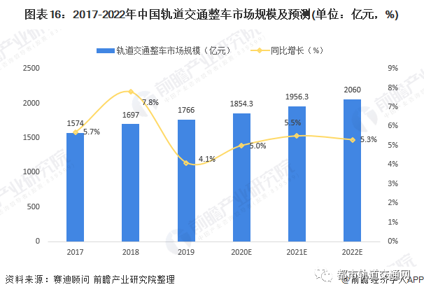 2、2022年轨道交通整车市场规模有望突破2000 亿元