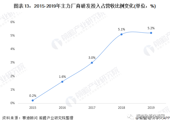 产品核心竞争力的提升离不开企业持续高强度的研发投入,2015年以来,高铁整车制造企业研发投入增速显著增加,近三年年投入额均在百亿元以上,2019年达125亿元,同比增长11.8%。