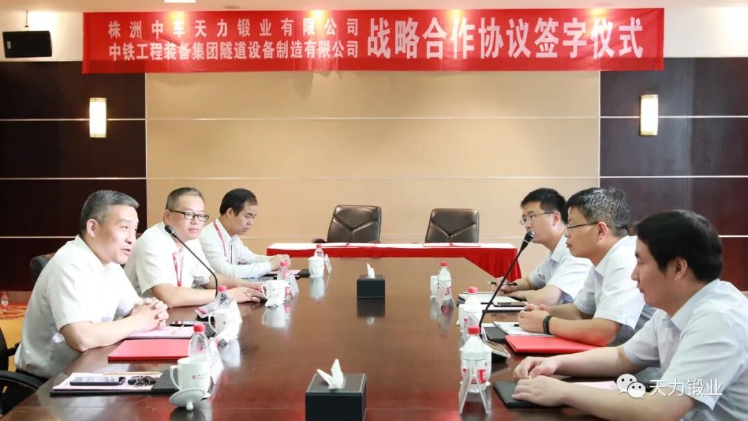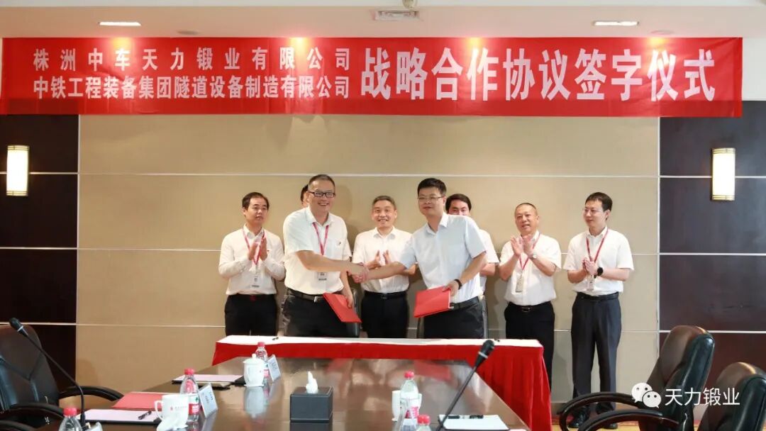 5月26日上午,株洲中车天力锻业有限公司与中铁工程装备集团隧道设备制造有限公司携手合作,在湖南株洲签订战略合作协议,吹响了天力锻业全面进军盾构机刀具产业领域的冲锋号。中铁装备集团设备公司党委书记、执行董事王俊龙,株洲控股党委副书记、总经理胡志军,株洲控股副总经济师、天力锻业董事长韩军等出席签约仪式。株洲中车天力锻业有限公司一直致力于金属材料应用技术研究、轨道交通高端轴类产品研制和金属成型工艺研究。近年来,天力锻业在株洲控股引领下,精心产业布局、拓展市场范畴、丰富产品类型,盾构机刀具产业正是天力锻业选择发力的新产业目标,也是株洲控股精心培育的新种子业务。为此,天力锻业迅速地完成了盾构机刀具专业团队的组建、完成了全系列盾构机刀具产品的各项工艺准备、完成了高端原材料在盾构机刀具产品上的推广应用、完成了模锻生产线和环类件生产线的建设投产,盾构刀具市场快速铺开。中铁工程装备集团隧道设备制造有限公司是世界500强企业——中铁股份有限公司的三级子公司,是中国隧道施工专用设备创新领导者、高新装备推广的探路者。其全系列盾构/TBM产品应用于城市轨道交通、铁路、公路、矿山、新能源、水利水电、军民融合等诸多领域,产销量连续7年国内第一、连续3年世界第一。株洲控股副总经济师、天力锻业董事长韩军表示,基于双方发展历程相近,都是国家高端装备产业链上的关键核心环节,都承载着国家“高端装备走出去”的光荣使命和实现国有资产保值增值的责任义务等共同点。两家公司为促进、扩大和深化双方的合作,实现优势互补、互利互惠、合作共赢和共同发展,均同意建立稳定全面的战略合作伙伴关系。双方将以此次战略合作协议的签订为新起点,在盾构机刀具原材料研发、国产化推进、制造工艺研究、标准制订和产业培育等方面展开深度合作、互为支撑,共同为盾构机刀具产业领域的发展带来深远变革。