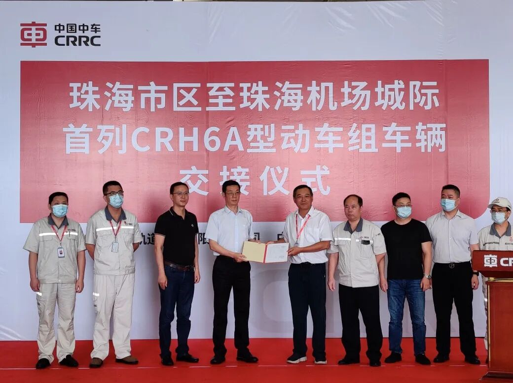 2020年5月27日上午,珠海市区至珠海机场城际,首列CRH6A型动车组在中车广东轨道交通车辆有限公司完成车辆交接。