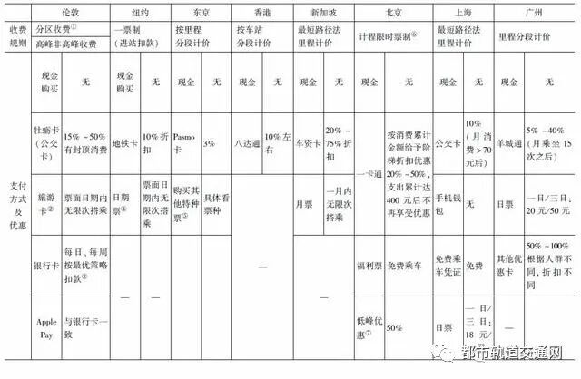 注:①分区收费:伦敦以中心区域为第一区,第二至第六区为围绕第一区的层层环状带,不论每程的实际距离,跨越的收费区越多票价相应越高。