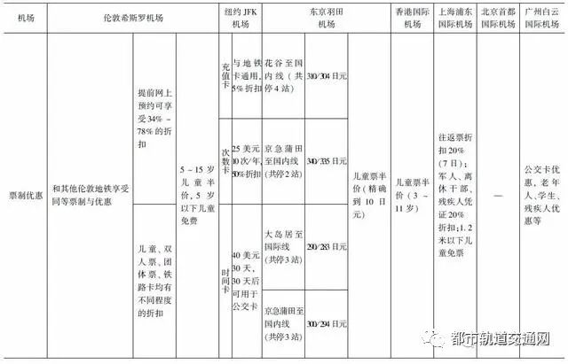 在优惠措施方面,国(境)外各线路的营销措施相比国内更丰富。伦敦有网上提前14-30天预约的优惠30天内往返票的优惠双人与团体票的优惠措施;在纽约JFK线有次数票时间票充值折扣票联合换乘优惠票等折扣方式;东京则存在多种运营区间和停站方式的列车为不同需求的旅客服务;香港有与沿线景点联合销售的旅游联合优惠往返票的措施。各类优惠措施层出不穷,在吸引客流的同时,也满足了旅客的不同需求。