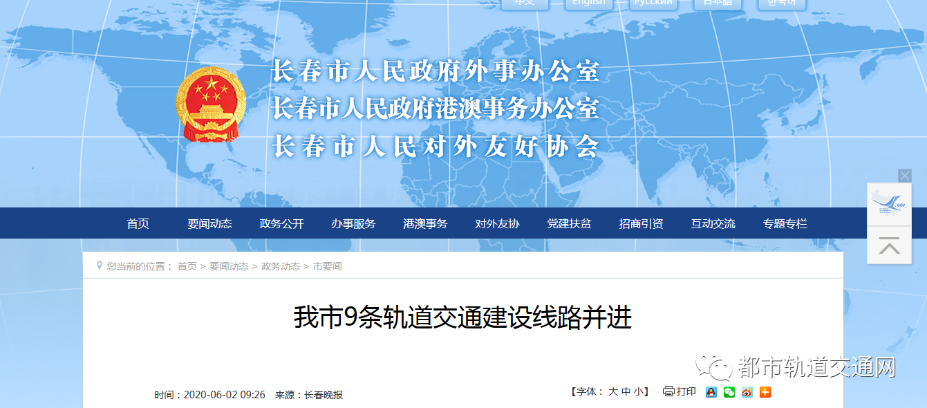 导读:长春市9条轨道交通建设线路并进
