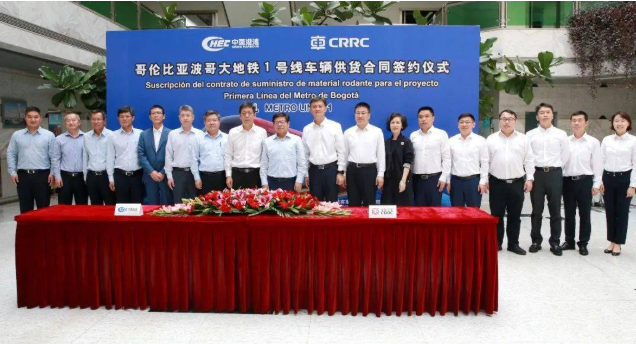 9月28日,哥伦比亚波哥大地铁一号线车辆采购合同签约仪式在中国港湾公司总部举行。中国港湾工程有限责任公司总经理唐桥梁、中车党委副书记楼齐良、中车总裁助理宁文泽、公司总经理王锋、中车国际事业部副总经理、···