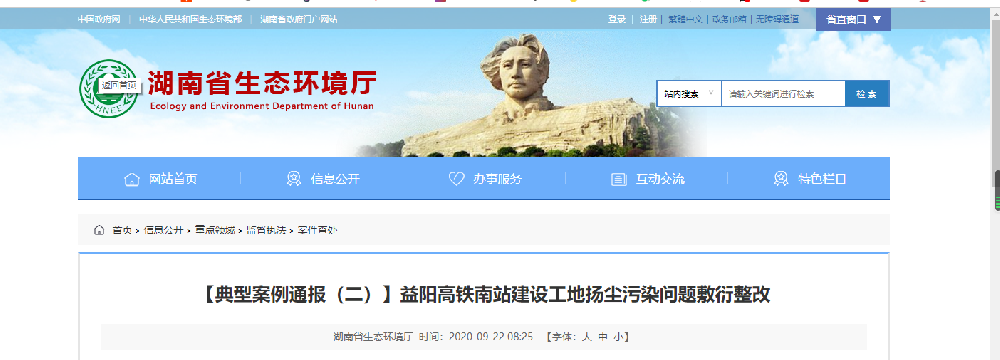 益阳高铁南站建设工地扬尘污染问题敷衍整改2019年11月,益阳市2019年度蓝天保卫战落实情况专项督察指出了益阳高铁南站建设工地扬尘污染问题。2020年9月18日,湖南省第四生态环境保护督察组(以下简···