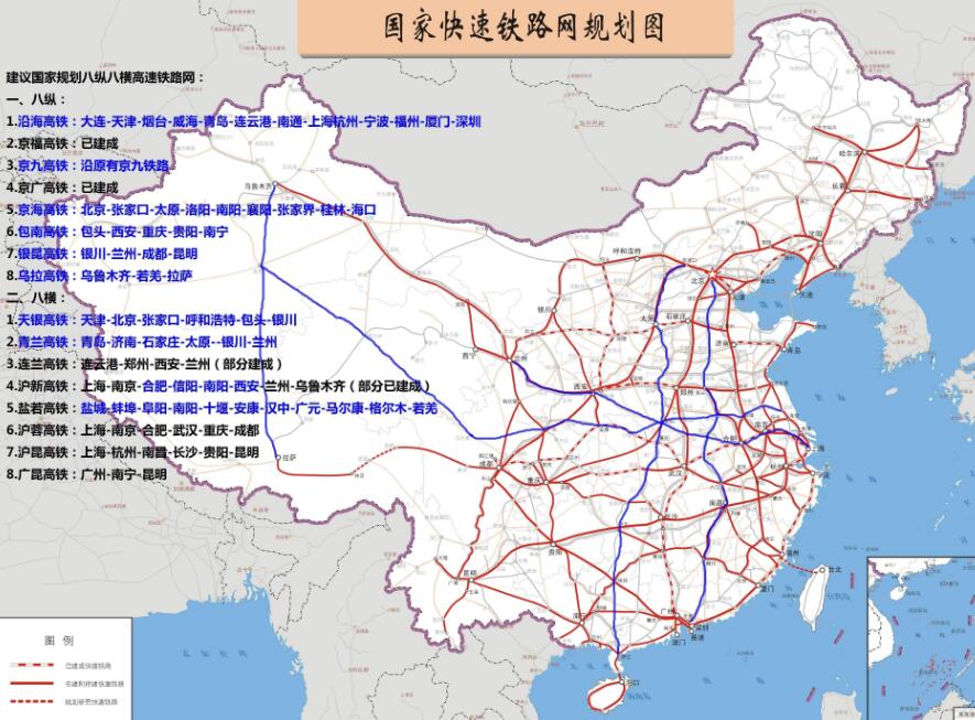 根据新修订的中国《中长期铁路网规划》(2016-2030年),勾画了新时期“八纵八横”高速铁路网的宏大蓝图。预计到2030年,将建成激动人心的八纵八横高铁网,总里程45000公里!基本连接全国各省会城···