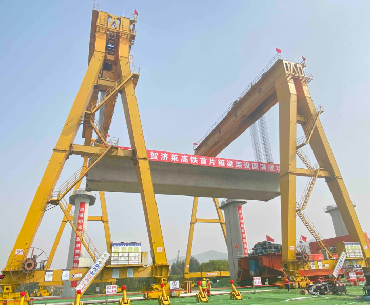 10月21日上午,中铁十四局龙门吊将重达900吨的箱梁稳稳地架设到济莱高铁跨瓦日铁路特大桥76、77号墩上,标志着国内首条市内高铁架梁施工全面展开。据济南轨道交通集团济莱高铁建设项目部常务副经理刘伟介···